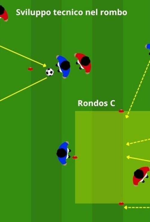 Attivazione con rondos e sviluppo tecnico nel rombo
