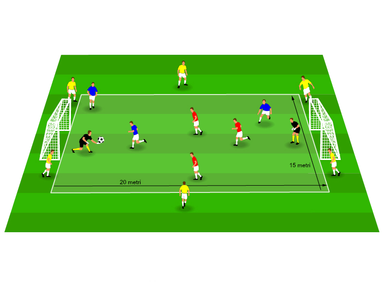 Vittoria: Vince la squadra che segna più gol durante il tempo totale dell’esercitazione.
